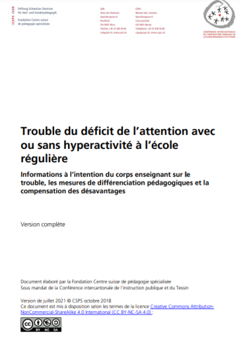 Trouble du déficit de l'attention avec ou sans hyperactivité à l'école régulière
